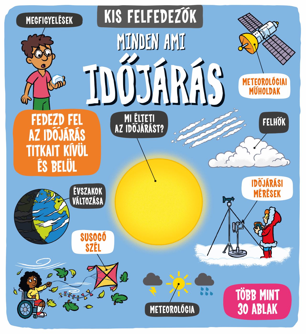 A Kis felfedezők - Minden, ami időjárás egy izgalmas ismeretterjesztő könyv, amely játékos módon mutatja be a gyerekeknek az időjárás működését. Megismerhetik a napsütés, az eső, a szél és a hó kialakulását, valamint megtudhatják, hogyan változnak az évszakok.