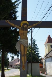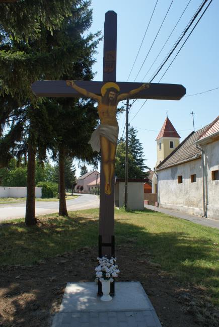 A feszület állításának időpontja nem ismeretes. Felújításra került 2017-ben a helyi hívő közösség szorgalmazására. A Bakonyerdő Zrt. adta a kereszt faanyagát, a Krisztus-korpuszt pedig Drabant András festette újjá.