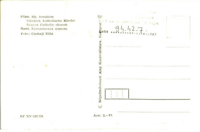Nagytemplom Felirat - Keltezés Pápa, 1963. Kiadó Képzőművészeti Alap Kiadó, Budapest Fotós - Őrzési hely Zempléni Múzeum, Szerencs Kivitel Fekete-fehér