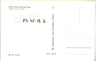 Előlapi kép Hátlapi kép Felirat - Sorszám 20 Képek száma egy kép Keltezés - Megjelenés éve - Postabélyegző - Kivitel Fekete-fehér Kiadó Képzőművészeti Alap Kiadó, Budapest Fotós - Őrzési hely Gróf Esterházy Károly Kastély és Tájmúzeum Szám XV. 98-691 CD-beli helye 1945 után Forma NULL