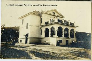 Előlapi kép Hátlapi kép Felirat Pápai irgalmas nővérek nyaralója, Balatonalmádi Sorszám 28 Képek száma egy kép Keltezés Balatonalmádi, 1929. Megjelenés éve - Postabélyegző - Kivitel Fekete-fehér Kiadó - Fotós - Őrzési hely Budapest Szám - CD-beli helye 1 Forma NULL
